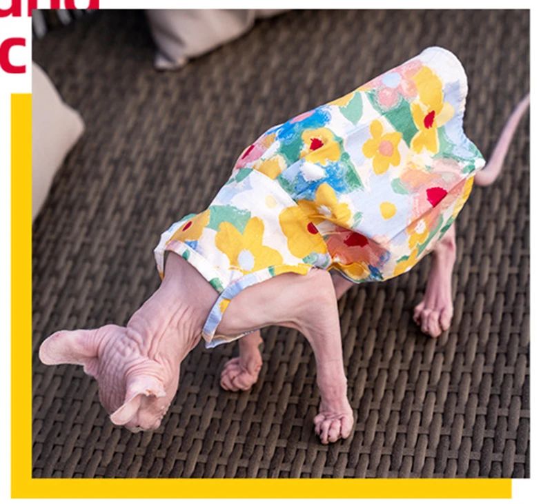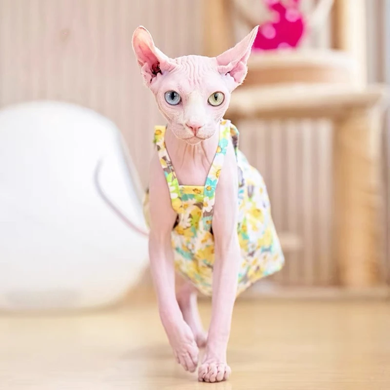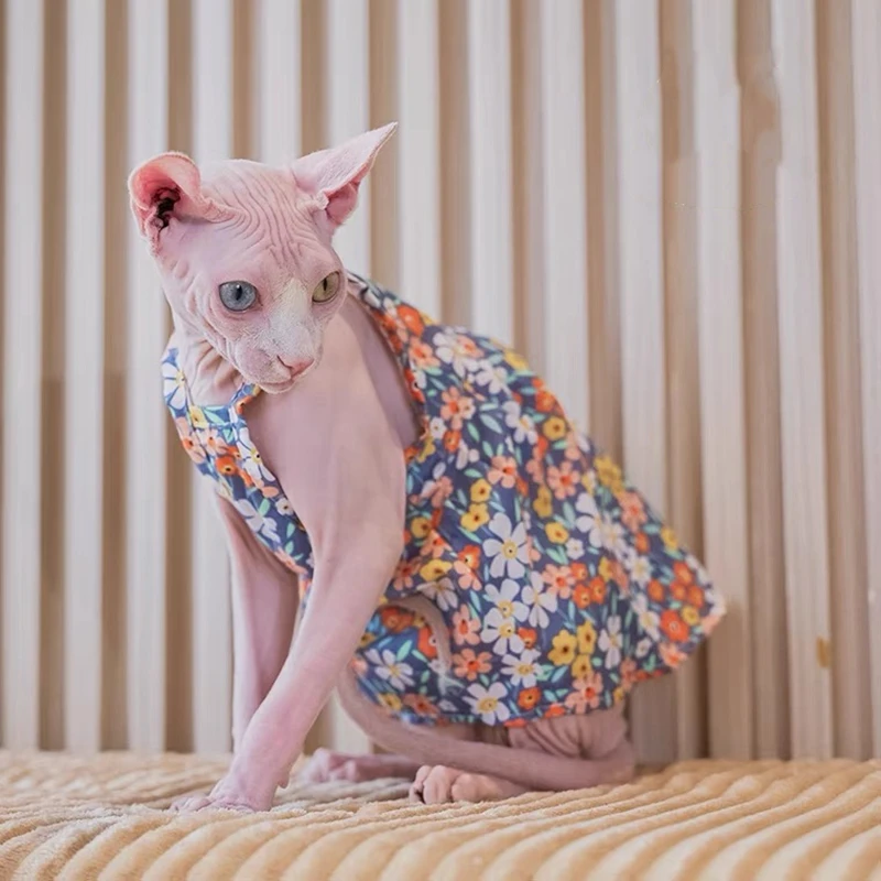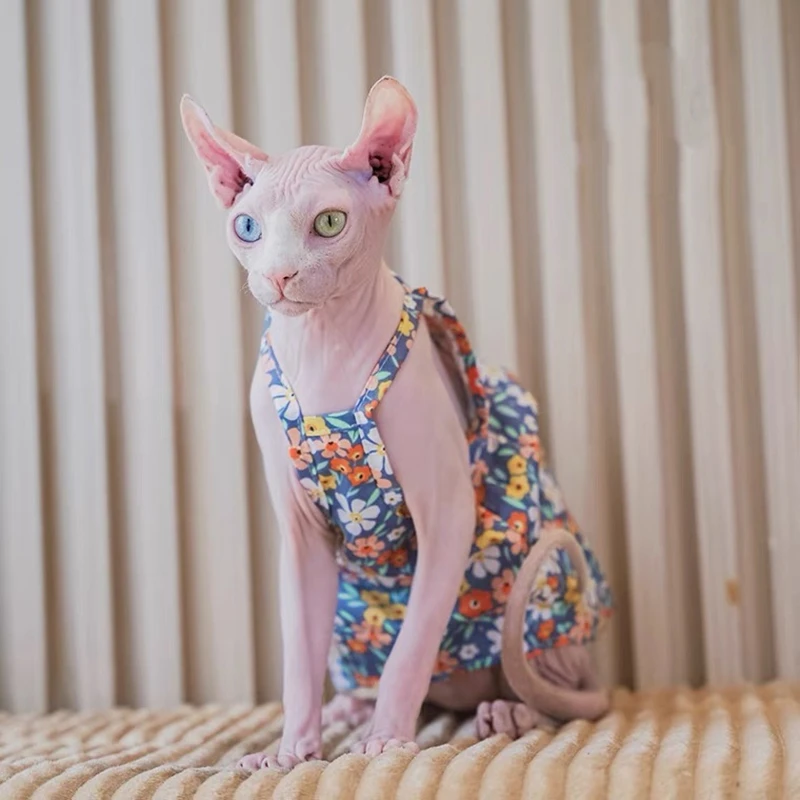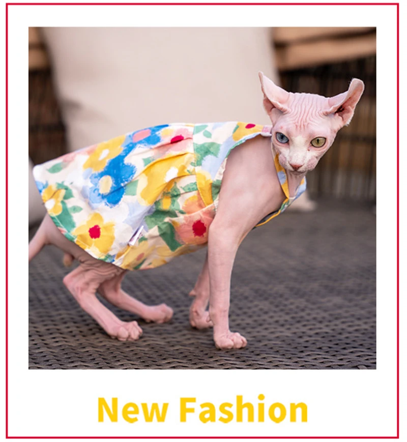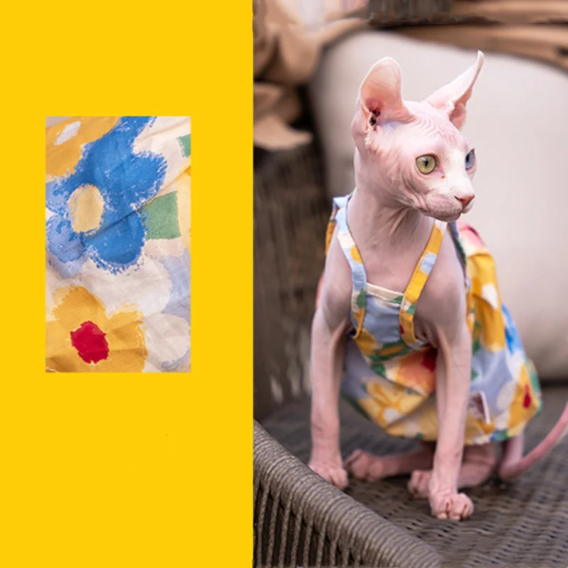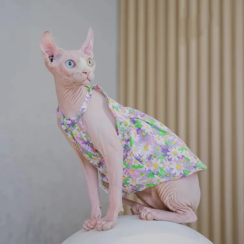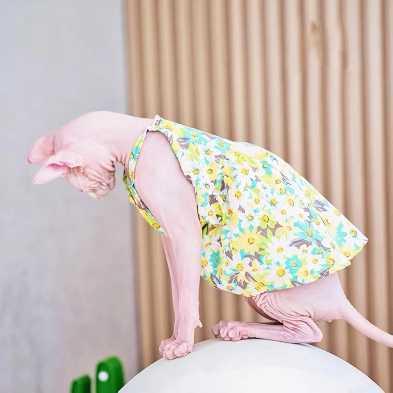 Sphynx Cat Flower Printed Fancy Skirt Cat Clothes