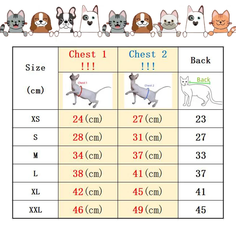 ❤Please measure the cat's front chest (chest 1) and back abdomen (chest 2)